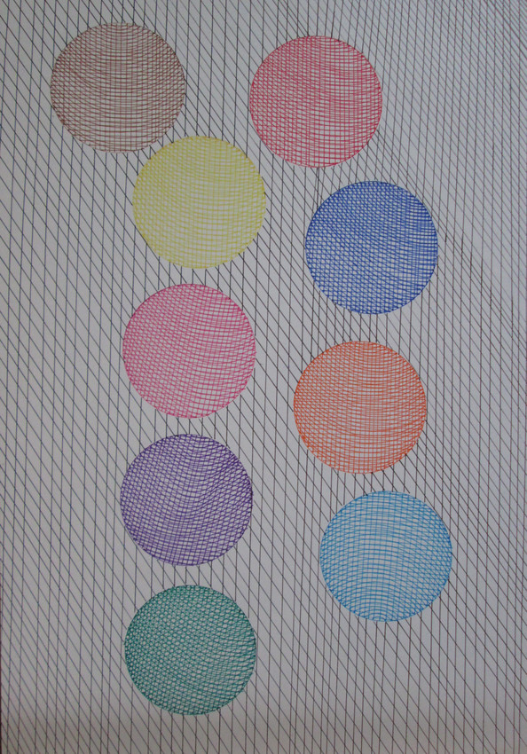 círculos relleno trama técnica plumones sobre cartulina
