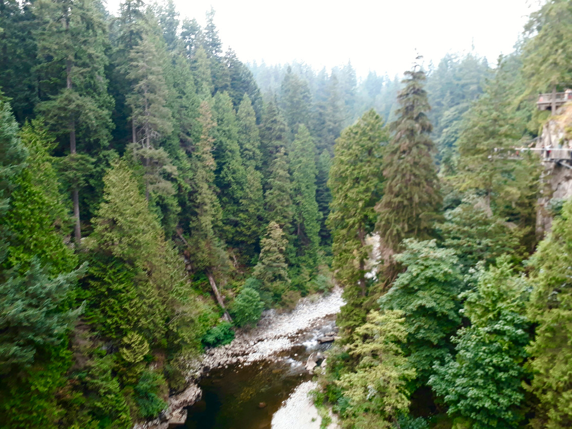 Río Capilano, desde el puente, en Vancouver Canadá. A una altura de 70 metros.