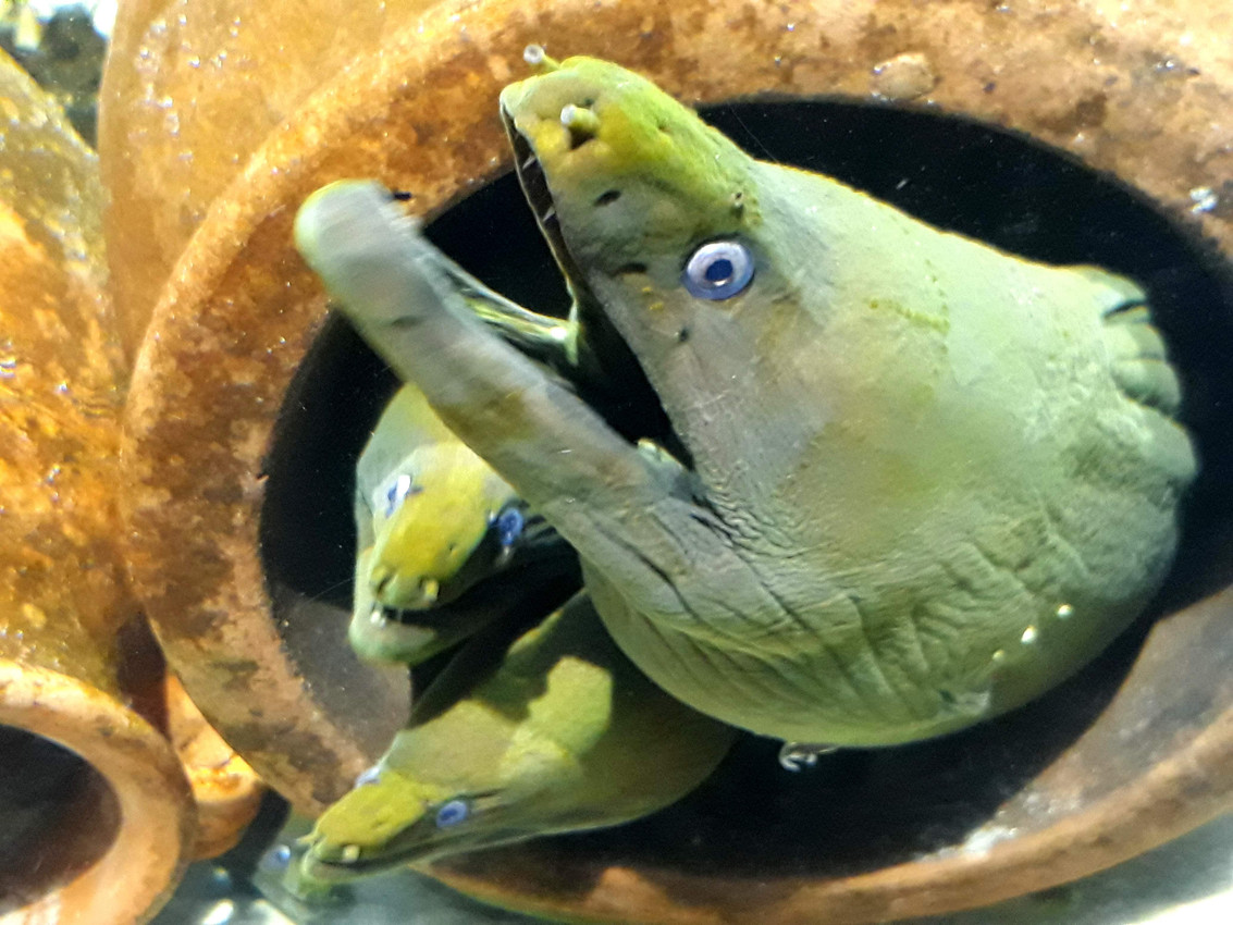 Un hermoso pez nocturno, un tipo de anguila marina, sin pectorales.