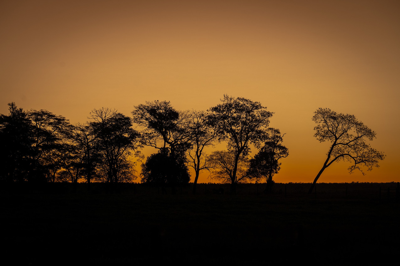 Fotogrfía de atardecer del perfil del bosque de la región del cerrado paraguayo, año 2023