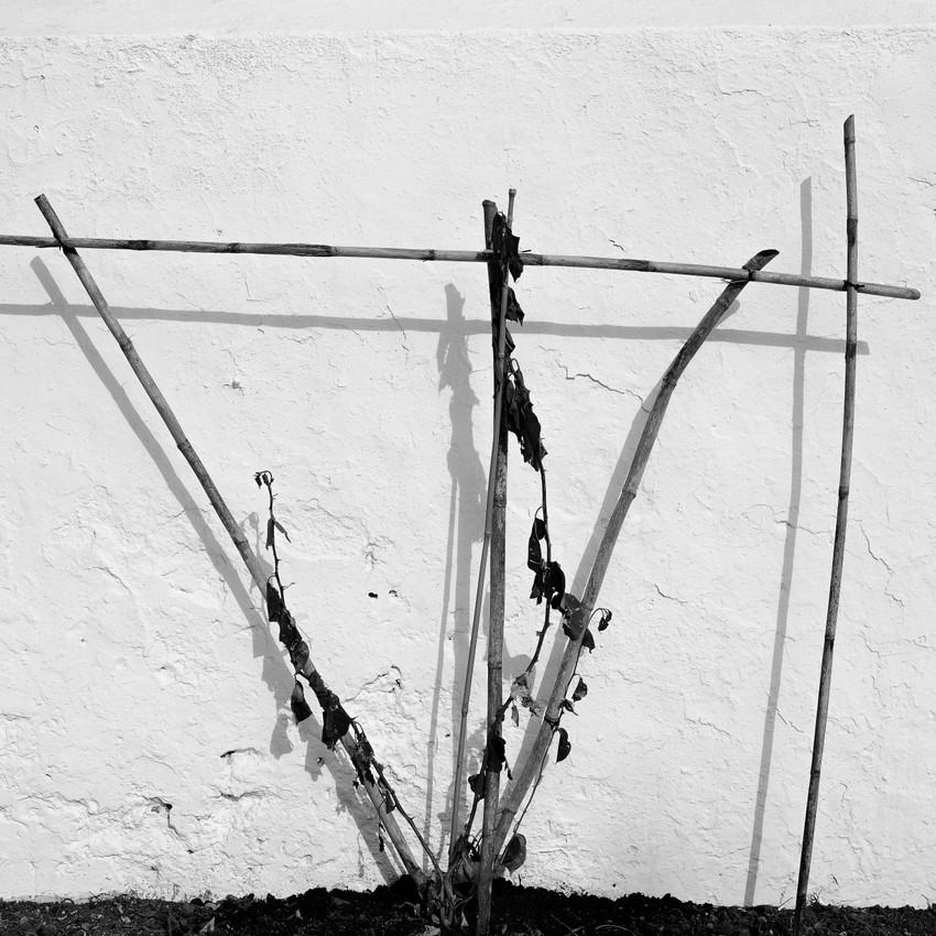 Fotografía digital que se encuadra dentro de la colección "Contra el muro", en la que se hace una crítica a la desnaturalización que se hace de la vegetación al hacerla crecer junto a estructuras artificiales tales como muros, impidiendo su total desarrollo y esplendor,
