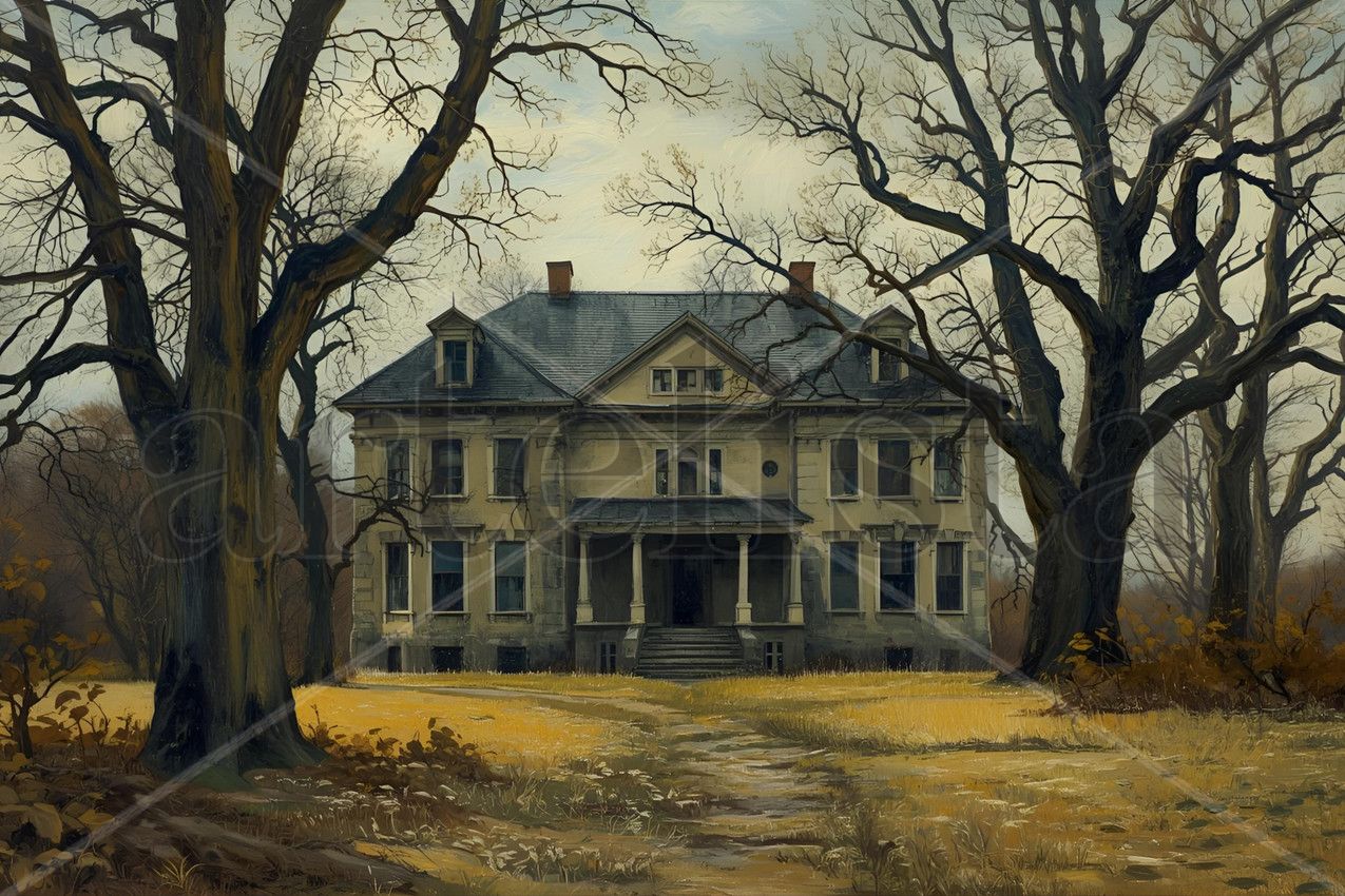 Esta obra digital titulada “Casa Abandonada Vintage” muestra una majestuosa casona antigua en medio de un paisaje nostálgico, creando una atmósfera misteriosa y perfecta para quienes buscan arte digital vintage y cuadros casa antigua para decorar sus espacios.