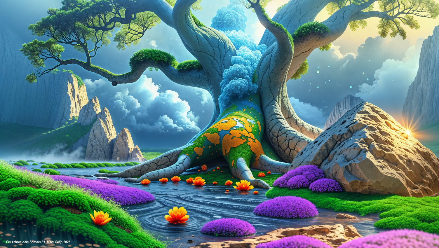 Cuenta la fábula que este árbol no creció de la tierra, sino de los anhelos de quienes soñaron demasiado fuerte. Cada hoja es un deseo, cada raíz un recuerdo. Quien se aventure a su sombra podría hallar la verdad de su corazón… o perderse para siempre en la bruma de sus promesas. En este paisaje, donde lo real y lo imposible se entrelazan, Martí Felip nos invita a cerrar los ojos y caminar descalzos por el umbral de lo eterno.