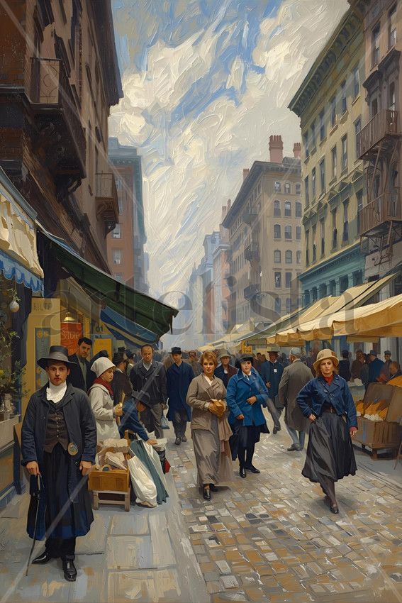 Mercado Urbano Vintage” es una obra digital original que captura la esencia de un mercado callejero clásico, lleno de vida, texturas y detalles que evocan la elegancia de las ciudades antiguas. Con un estilo pictórico que recuerda al óleo tradicional, esta pieza destaca por su composición equilibrada, la luz suave y la atmósfera nostálgica del arte urbano vintage, perfecta para quienes buscan añadir carácter y profundidad a sus espacios.