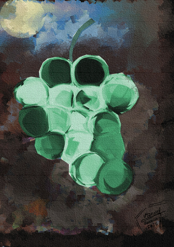 Un dibujo muy interesante de una uva multicolor con fondo desgarrador