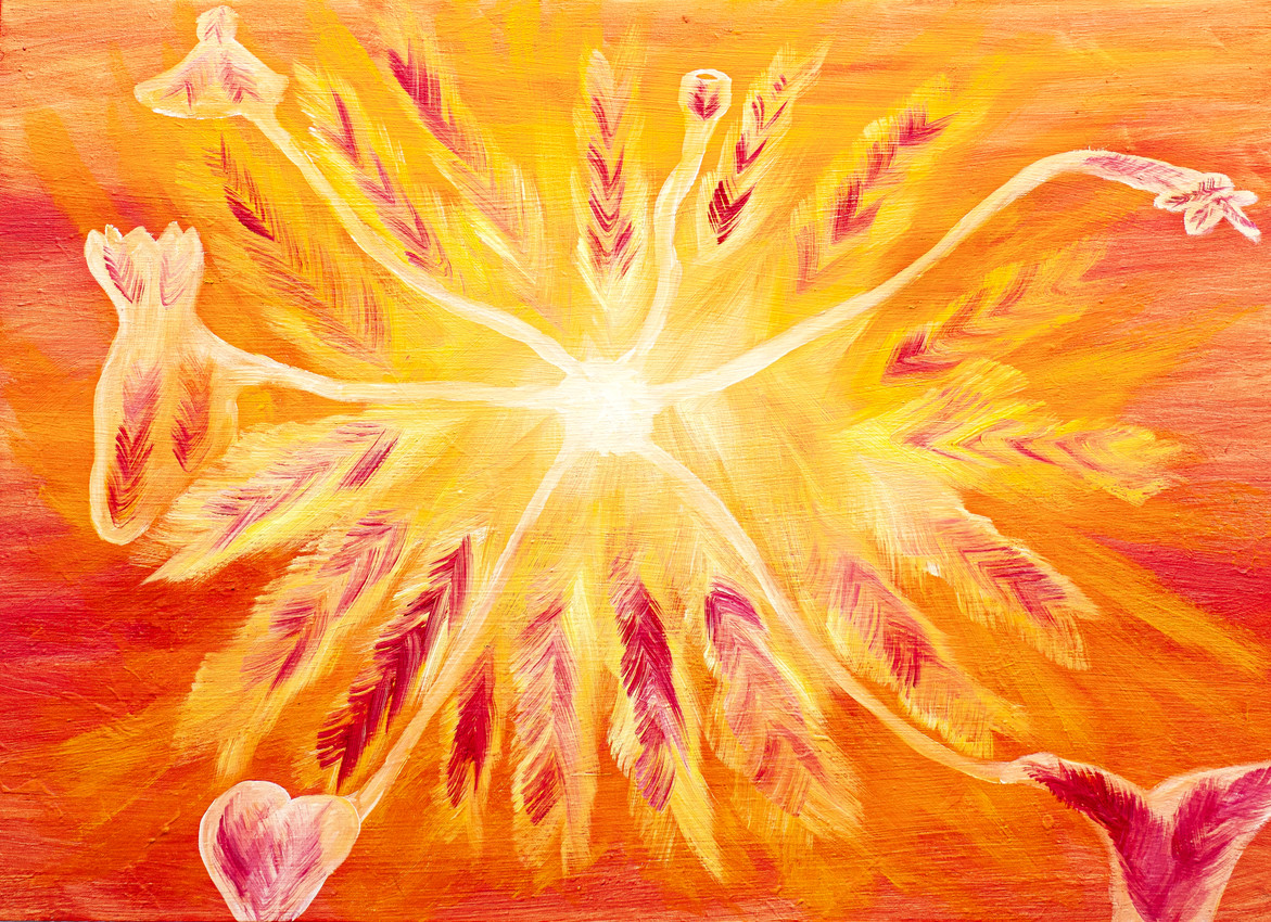 El cuadro se titula "El calor del vidrio" y representa mi experiencia con el soplado de vidrio. Durante unas vacaciones, fui a Medellín con mi mamá para conocer la ciudad, y también porque había un curso sobre soplado de vidrio en los últimos dos días de nuestra estancia. Durante el taller, tuve la oportunidad de crear una figura con vidrio, y me fascinó profundamente sentir el calor del horno y observar cómo el vidrio se derretía. Luego, al soplarlo y darle forma mientras aún estaba caliente, viví una experiencia única e inolvidable