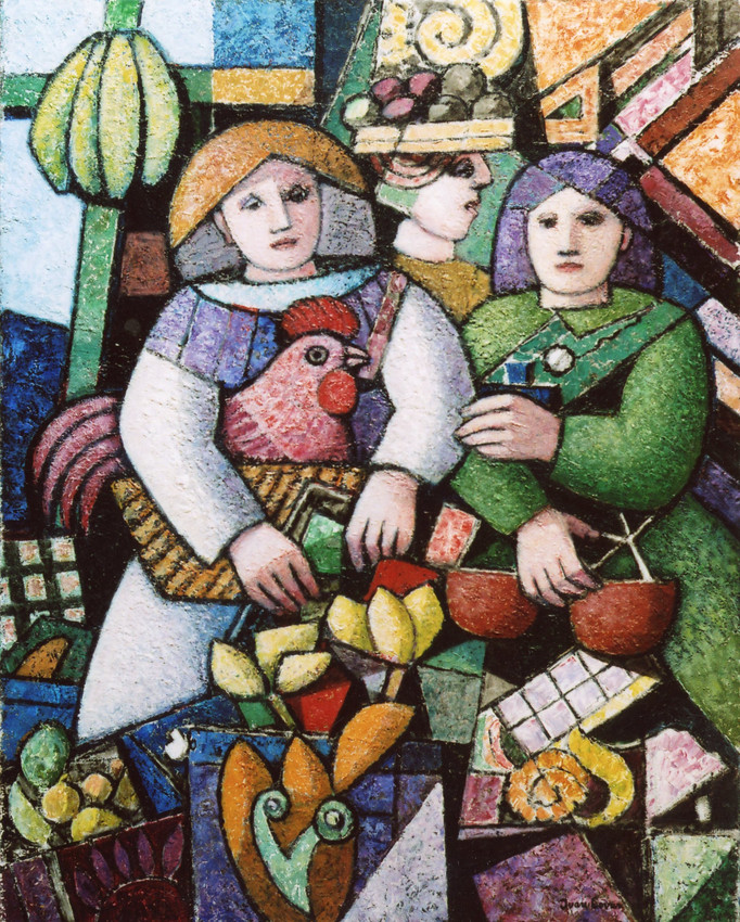 El Mercado (Gallo) Oleo sobre lienzo 92x73cm 30F Juan Covas Autor mallorquín, de Andratx. (1927-2017) Colección personal del artista