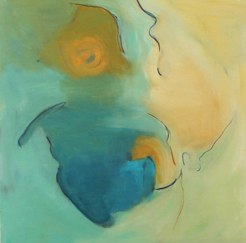 , esta pintura en óleo sobre lienzo evoca una atmósfera serena y soñadora. Su paleta de colores se combina con un estilo abstracto y expresionista a, creando un espacio único que provoca pensamientos que evocan la conexión del arte y las emociones.-