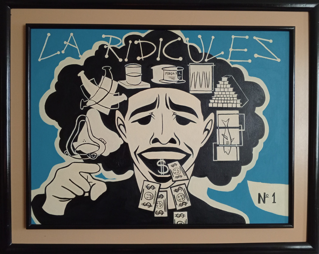 La obra se resume en dos palabras: arte ridículo. A través de un estilo gráfico de inspiración cartelista, propone una mirada irónica hacia el arte contemporáneo y su relación con el mercado.