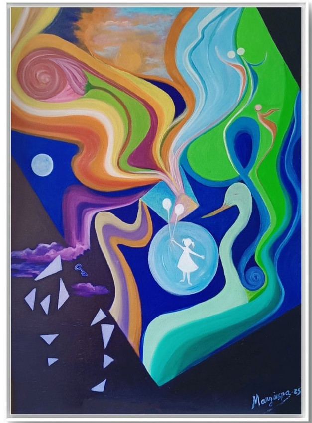 el cuadro habla del viaje interior liberar a la niña que llevamos, escucharla y permitir salir a explorar sin miedo.