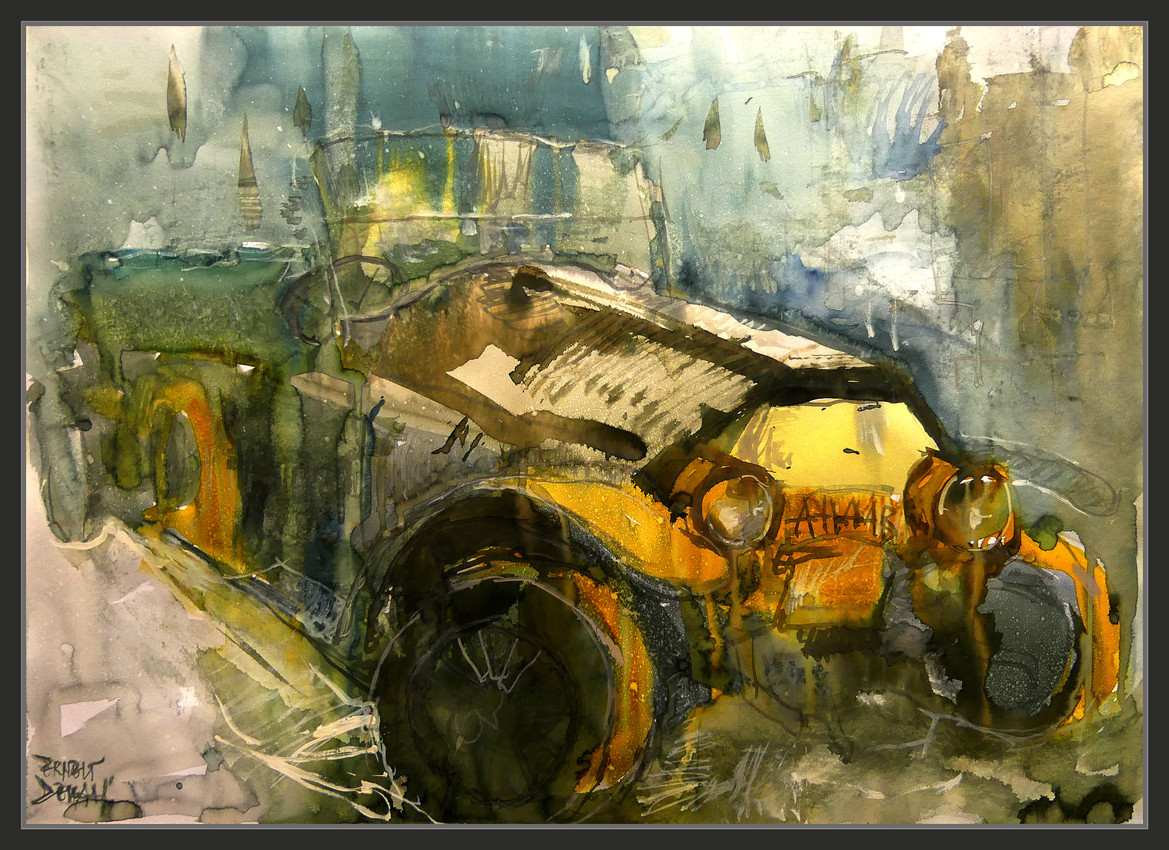 El automovil en el que viajaba el Archiduque Franz Ferdinand y su esposa y que acabó `provocando el inicio de la Primera Guerra Mundial por su asesinato en la ciudad de Sarajevo. El famoso coche ahora en las salas de esposición del Museo de Historia Militar , Arsenal,en Viena, Austria. Piezas históricas que he pintado con acuarelas sobre papel de 50 x 70 centímetros, buscando la expresividad plastica y el gestualismo de los pinceles. Pintura del artista pintor Ernest Descals.