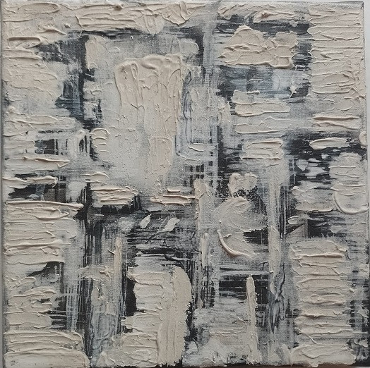 Un estudio monocrático sobre la tensión y la estratificación matérica. Esta obra despliega campos de empaste blanco de gran densidad que se deslizan sobre un fondo negro, creando una arquitectura visual de orden y caos. Los relieves de la pintura dialogan con pasajes traslúcidos y raspados, orquestando un ritmo vital entre la construcción y la erosión del plano pictórico. A través de una paleta restringida que potencia el contraste, la gestualidad del pincel y la espátula revelan una profundidad hipnótica. Es una pieza de intensa quietud y cambio estructural; una adición imprescindible para colecciones que valoran la elocuencia de lo mínimo.