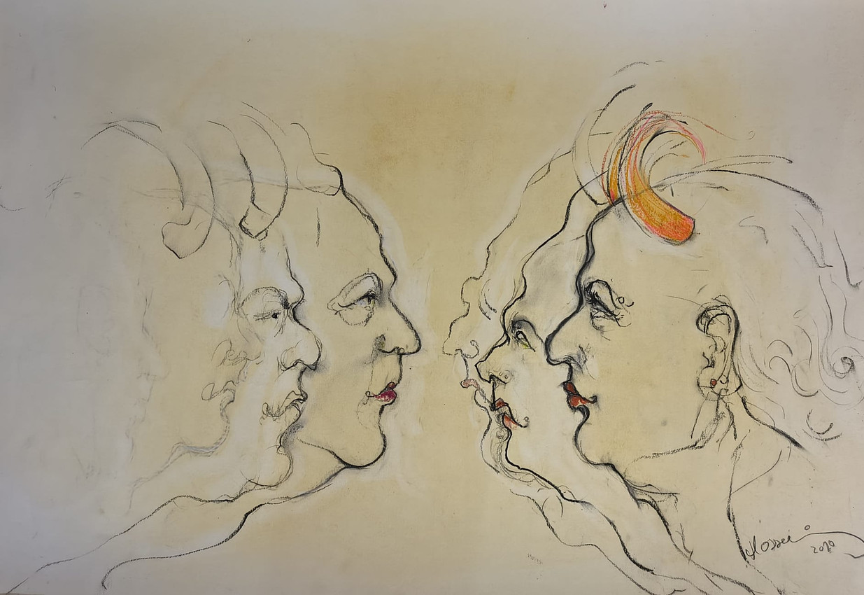dibujo de lápiz y acuarelo sobre papel