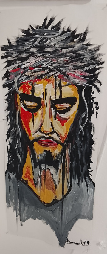Es jesus de nazarah soltando su sangre por el rostro despues de ser crucificado