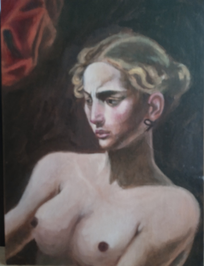 Copia libre de detalle de Judit y Holofernes de Caravaggio