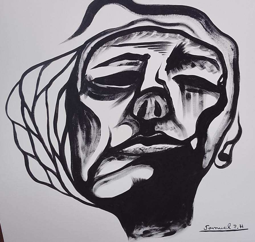 Es un rostro donde tiene una red que quiere significar el estar atrapado en su pasado