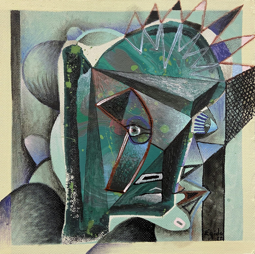 Obra perteneciente a la serie "Autorretratos experimentales". Obra del año 2022. En esta serie el artista utiliza el autorretrato para experimentar con la forma, los materiales y las texturas de la pintura.