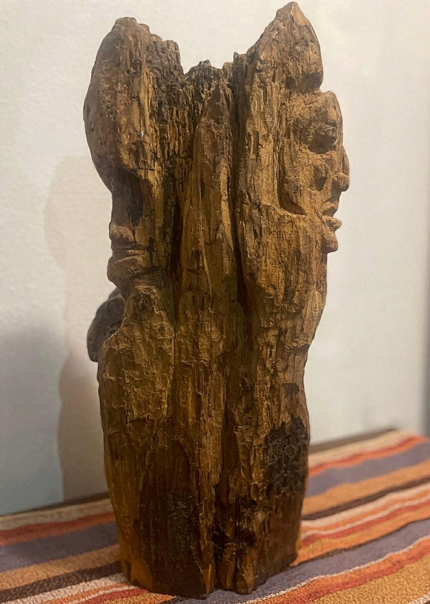 Pieza única, de fuerte carga expresiva, donde el gesto del tallado dialoga con la forma natural del material, consolidando una obra contemporánea de carácter íntimo y poderoso.
