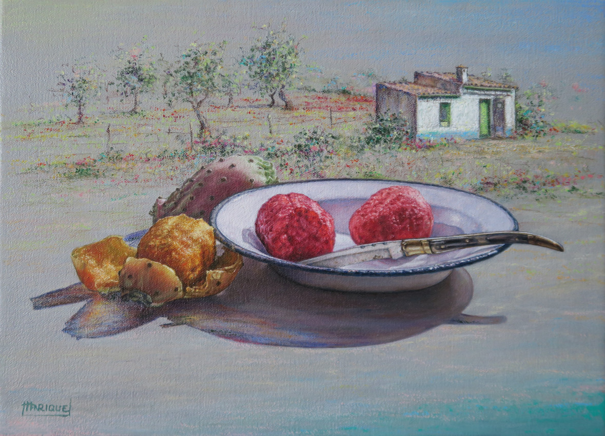 Plato típico con chumbos o higo chumbo como se les conoce en Málaga, fruto de la chumbera que se recolecta en el mes de Agosto por lo que es una fruta del verano verano.