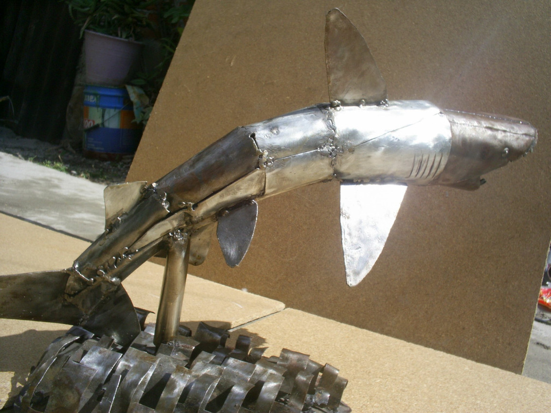 tiburon creado a base de laminas y desechos de metal unidos por soldadura