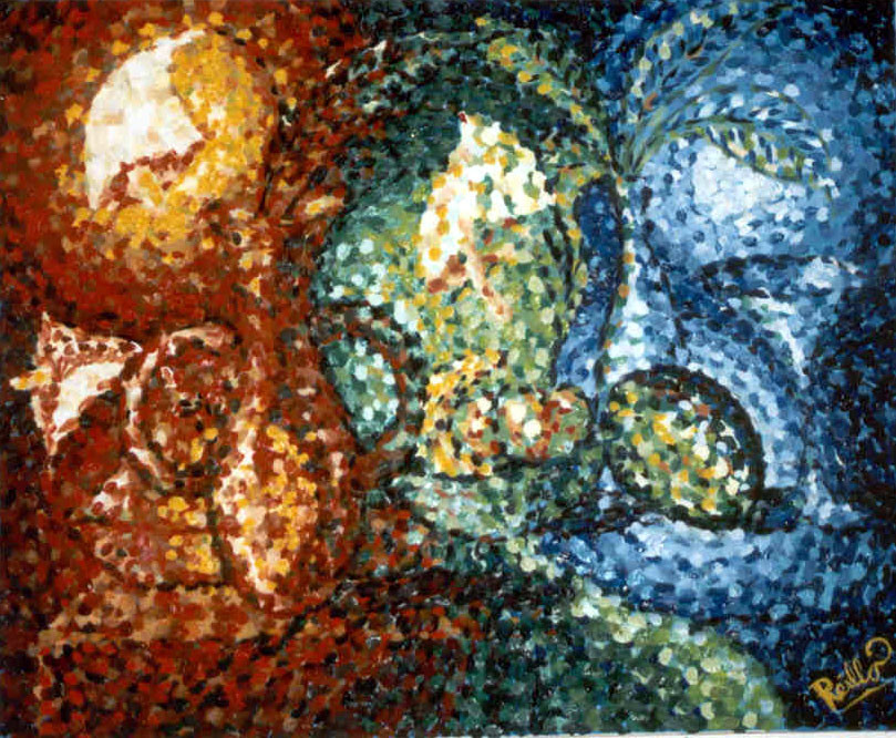 Imagen doble, bodegón y rostros con técnica pinceladas