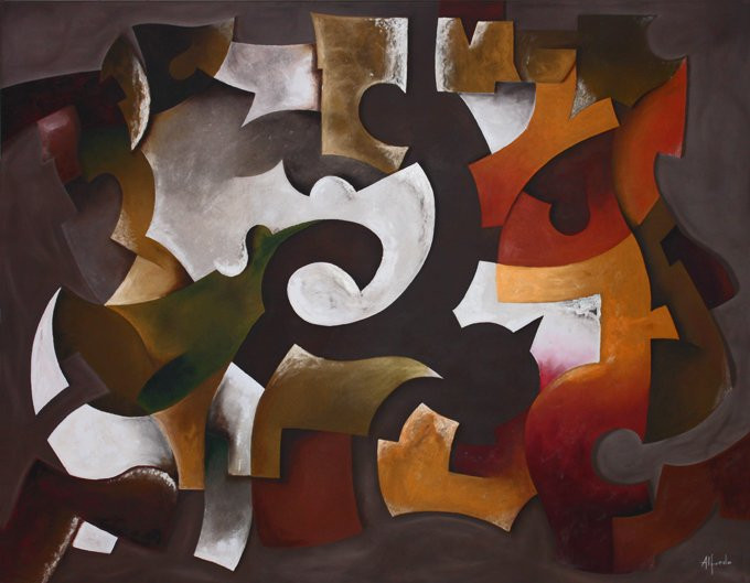 Cuadro abstracto en tonos marrones y naranjas
