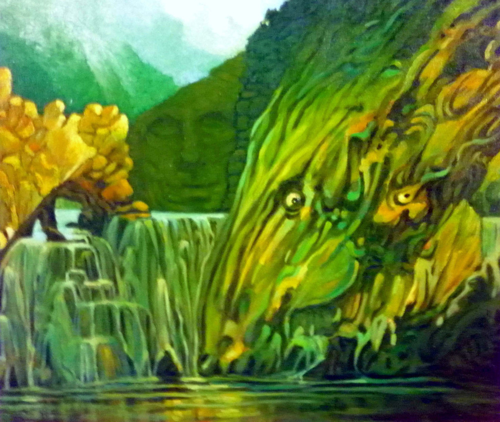 Abrevando, Oleo sobre lienzo de 62x52 cm.