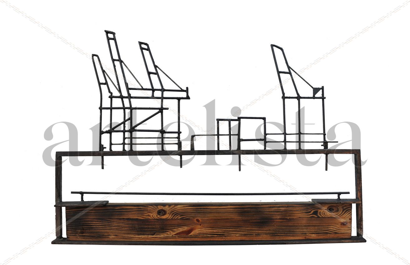 _ Paisaje realizado con hierro trabajado con fuego y madera en la parte inferior.
