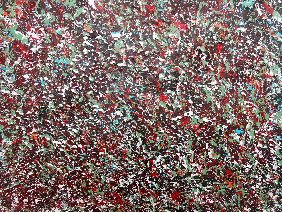 Este cuadro es una obra abstracta que recuerda a la técnica del dripping o goteo de pintura, popularizada por artistas como Jackson Pollock. La superficie está cubierta por una maraña de colores que parecen haber sido salpicados, vertidos o arrastrados en múltiples capas.