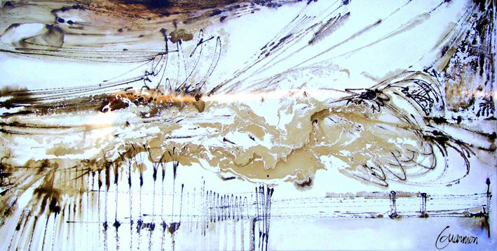 Un caballo qu escapa rebelde en busca de su camino en libertad. Ademas hay caminos, alambres, torres, pajaros que lo acompañan en un ambiente de mucho movimineto