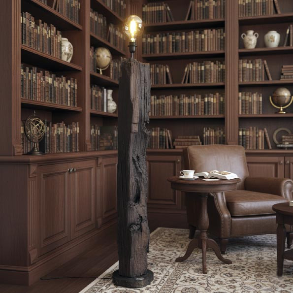 Lámpara de pie, diseñada sobre traviesa de tren original de madera de roble.