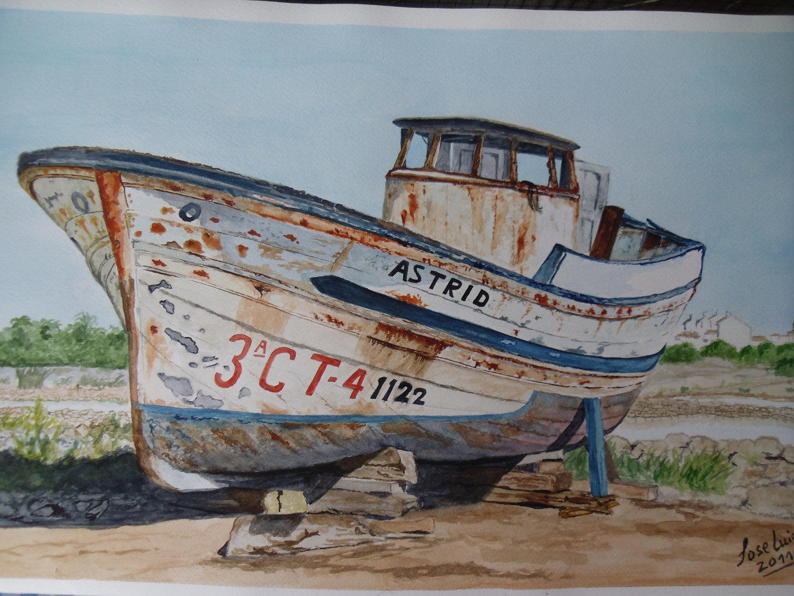 barco pesquero varado y abandonado