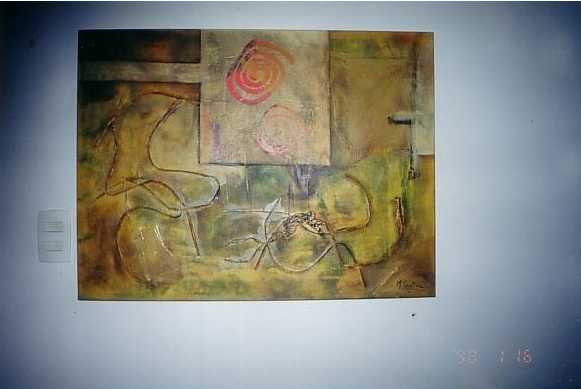 acrilico , masa, otros elementos sobre tela