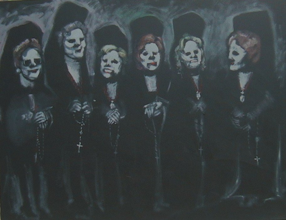 Damas ataviadas con mantilla, en laPlaza de María Pita de A Coruña, en la tarde del 10-04-2009, durante la celebración del Viernes Santo (Segunda versión)