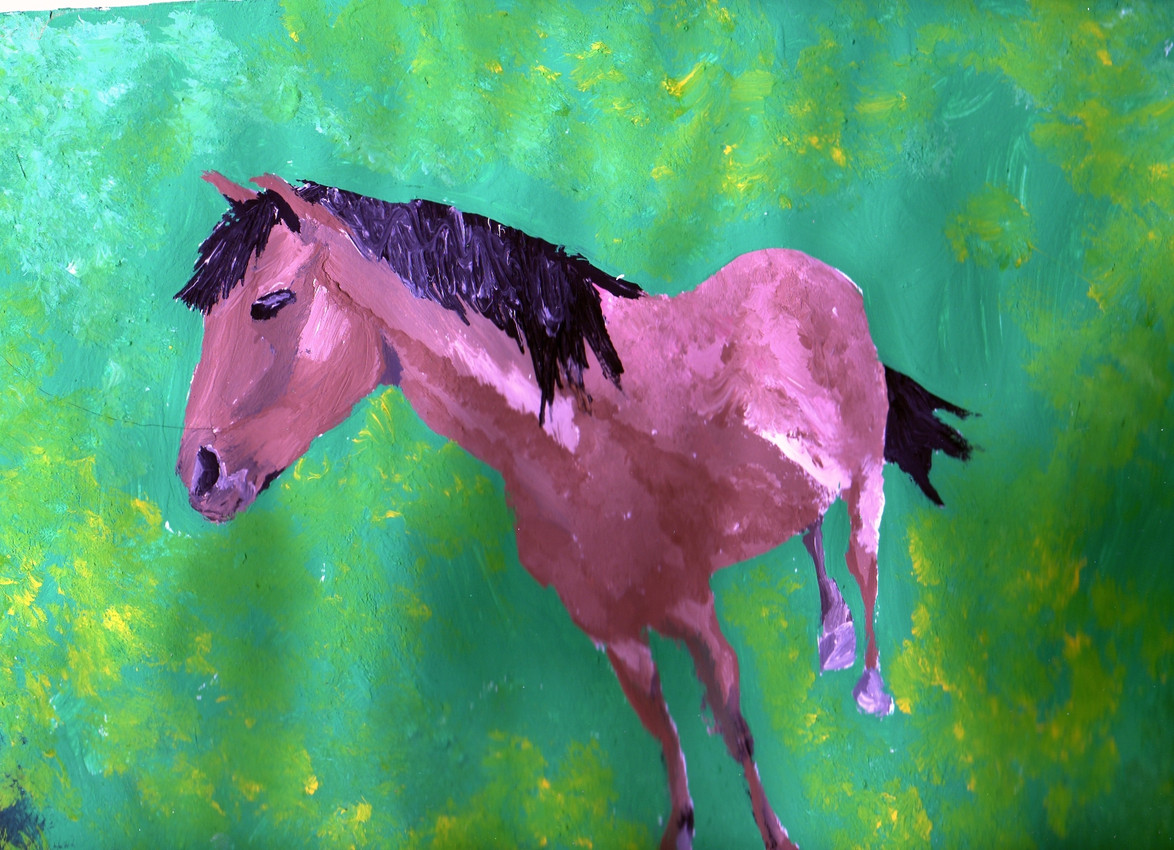 Es la pintura de un hermoso ejemplar hembra de un Equino,esta se encuentra en el Fundo LAS pPamplinas Camino a riachuelo,Osorno,esta pintura no fue realizada observando al animal,ni mucho menos de una fotografia,solo fue extraida de los recuerdos de esta fiel servidora del Arte.
