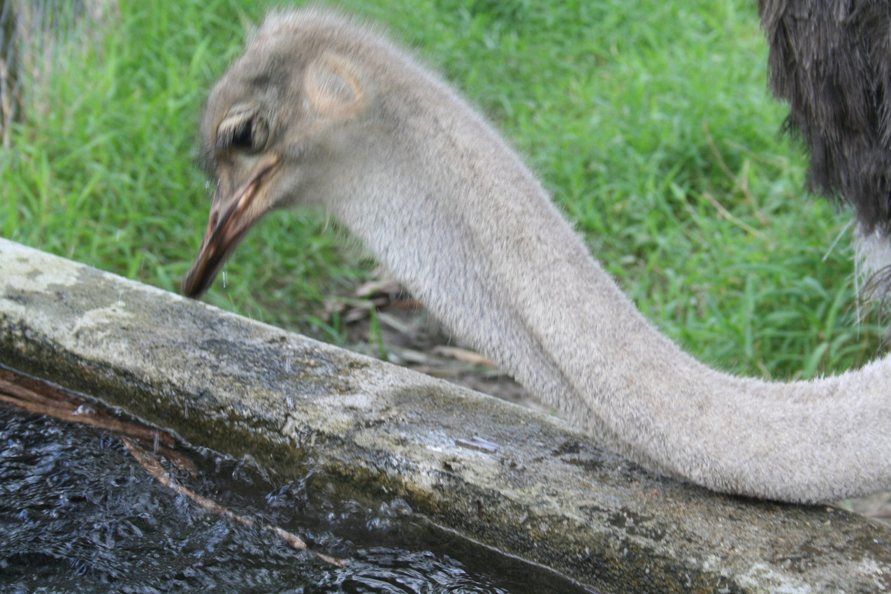 Un avestruz bebiendo agua
