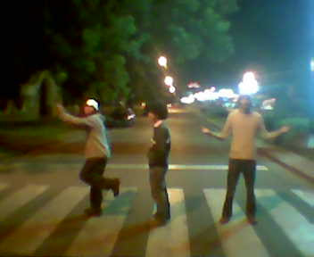 los fanaticos de los beatles deben acordarse claramente de la maravillosa placa de ellos "abbey road"...bueno esto es una parodia, por asi decirlo, de ello, pero en la foto, los actores caminan en contramano a la verdadera tapa del disco, y como deben haber podido observar, falta uno, pero bue, q se le va a hacer...no?...