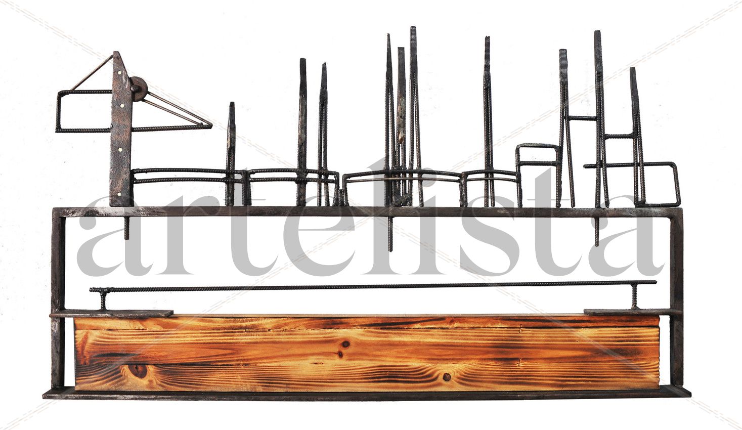 _Obra realizada con hierro y madera. En ella se identifica la vista de Petroquímica desde playa El Rinconcillo, Algeciras, España