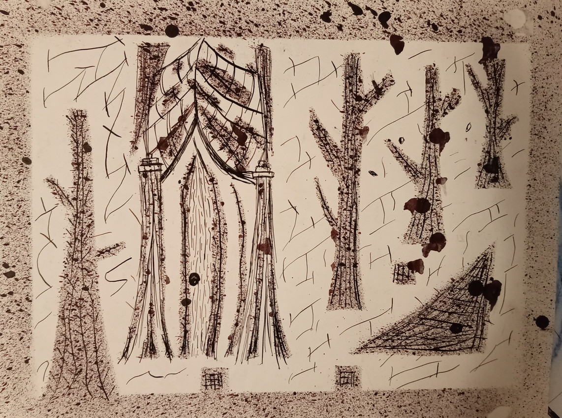 Las líneas negras no describen: invocan. Se deslizan como nervaduras, como cortezas abiertas, como telas que caen sin viento. Cada trazo es una cicatriz del tiempo, una escritura primitiva que no busca ser leída sino sentida. La mancha irrumpe —orgánica, oscura— como resto, como memoria que no pudo limpiarse del todo. No decora: testimonia.