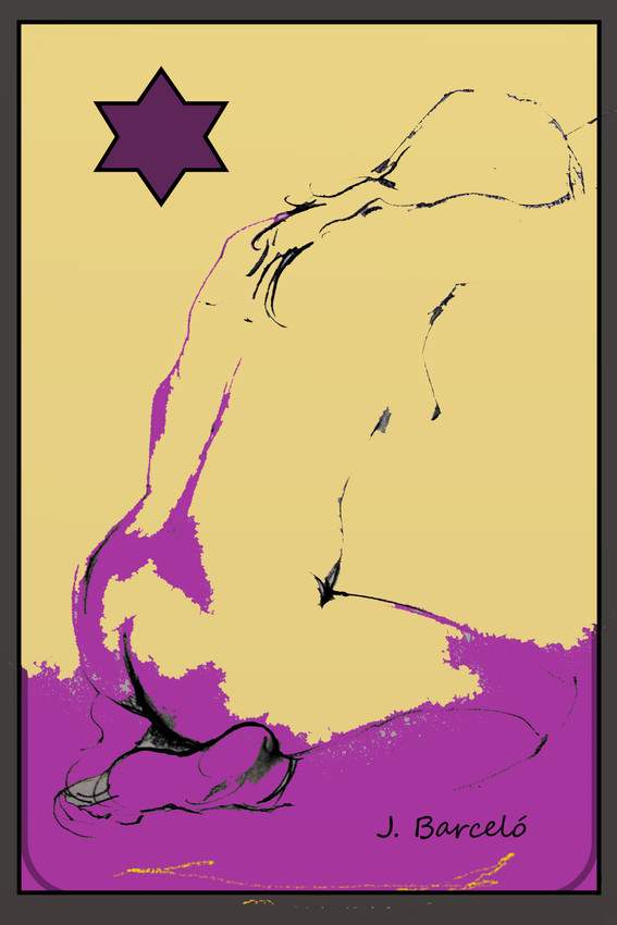Se trata de un cuadro de una mujer medio sentada de espaldas. Con colores violetas y ocres muy bonito ideal para reproducciones en Artelista Joan Barceló.