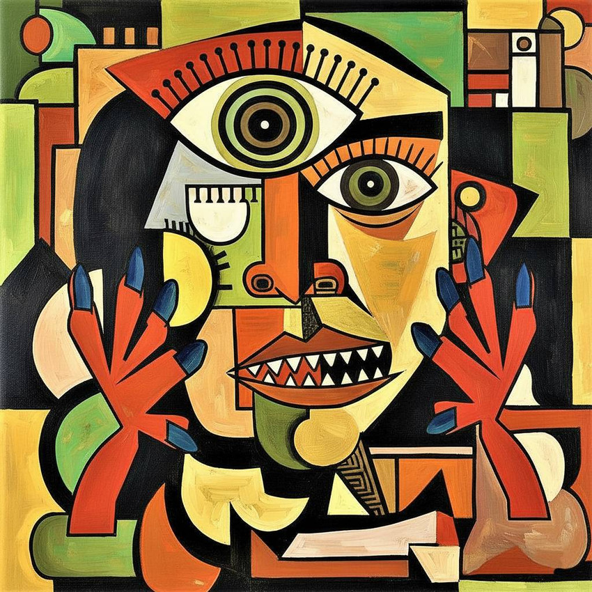 É uma excelente representação da maneira como o Cubismo desconstrói a forma e a apresenta de múltiplas perspectivas simultaneamente. A expressividade exagerada dos olhos e da boca, no entanto, introduz uma qualidade emocional mais intensa, aproximando-a do Expressionismo ou, dada a justaposição de elementos bizarros, do Surrealismo.