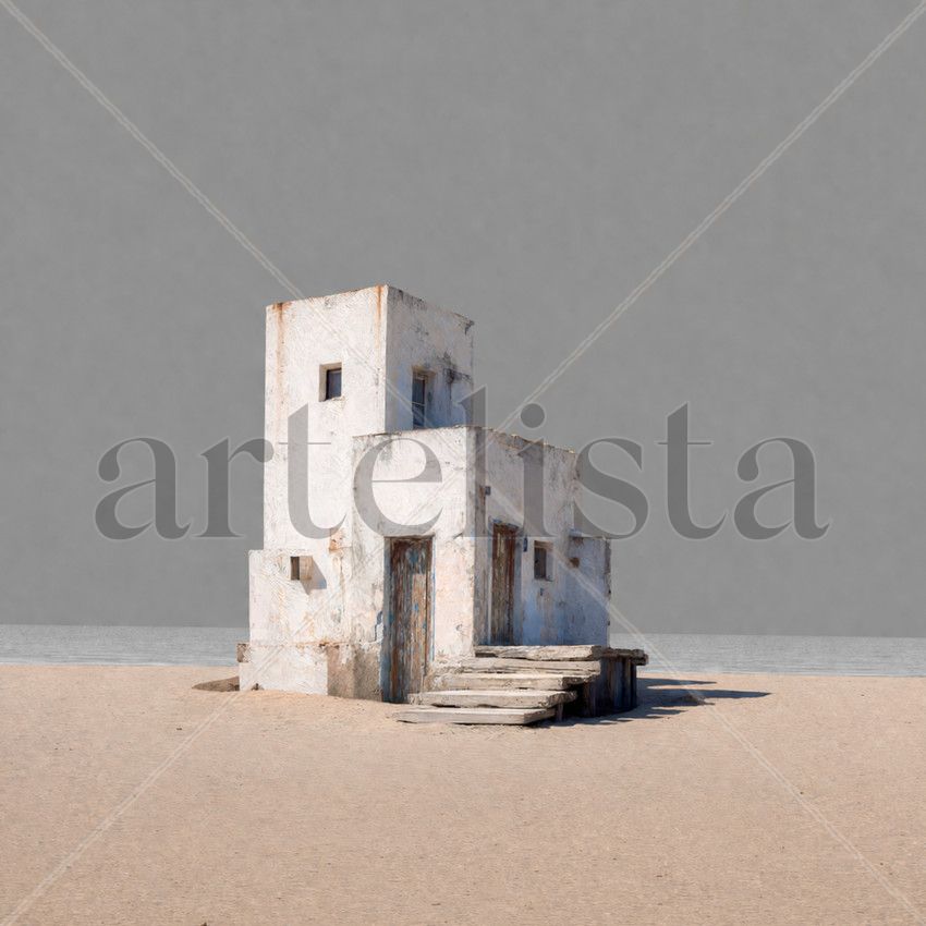 Un solitario y ruinoso chalet se yergue sobre la arena blanca, bajo un cielo de un azul eléctrico e inmutable. Esta obra captura no solo el final de una estación, sino el eco de innumerables veranos pasados cuyas risas se han desvanecido, dejando la estructura como un náufrago del tiempo. Una metáfora visual sobre la memoria, el abandono y la belleza decadente de lo que alguna vez tuvo vida.