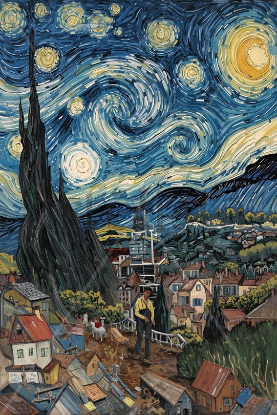 Noche Urbana en Espiral es una obra digital original de 7087 × 10630 píxeles, creada en un estilo vibrante donde el cielo nocturno cobra vida sobre una ciudad llena de detalles. Este trabajo pertenece a mi colección de cuadros de arte digital, y está diseñado para que el espectador sienta que puede entrar dentro de la obra, explorando cada remolino, cada luz y cada textura.