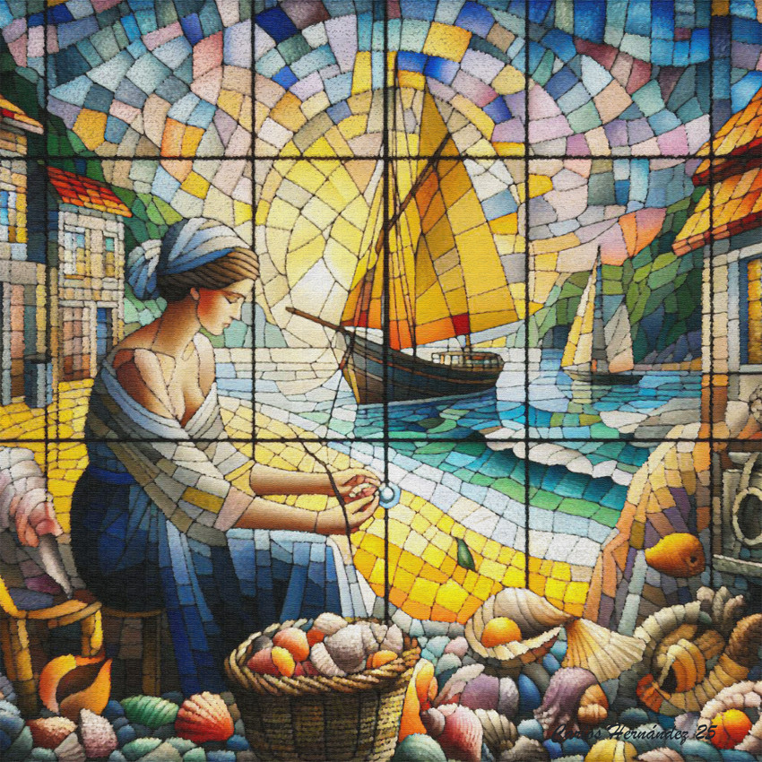 Obra digital a partir de una pintura propia realizada a modo de proyecto de vidriera.