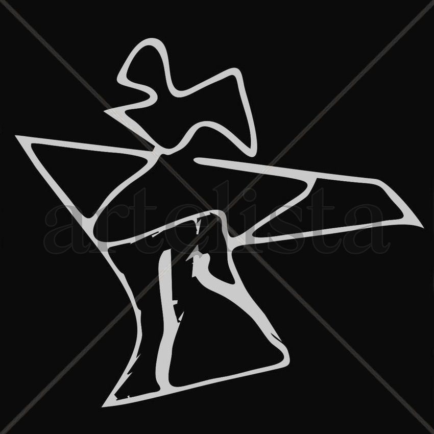 A imagem apresenta uma figura abstrata e estilizada, com um contorno branco espesso sobre um fundo completamente preto. A figura é composta por linhas curvas e angulares que se conectam, sugerindo uma forma orgânica ou antropomórfica, embora não seja imediatamente identificável.