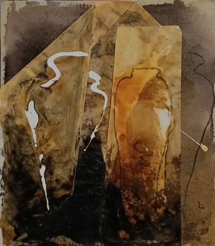 Obra de pequeño formato realizado sobre madera con técnica mixta a base de resinas, áridos y papel que se encuadra dentro de la serie "Alfarería"