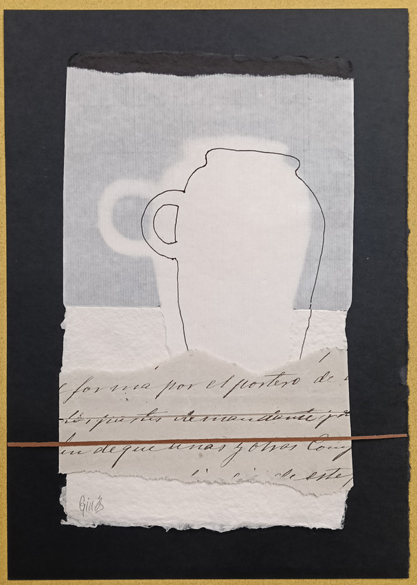 Obra de pequeño formato realizado mediante la técnica de COLLAGE, a base de papeles tintados, papel manuscrito original de principios del siglo XX, cartulinas y papeles varios