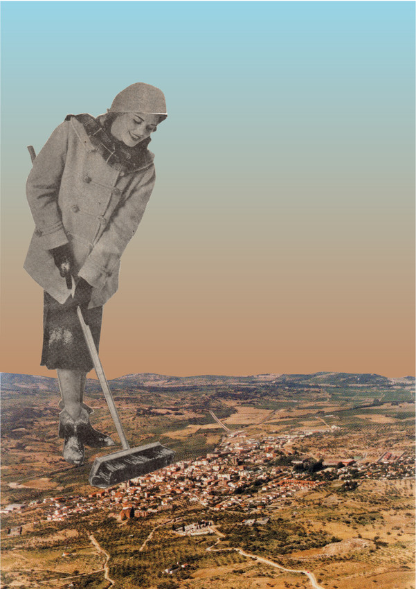 Collage analógico compuesto con imágenes de revistas antiguas, digitalizada para venta en formato print. Original 18 x 22 cm