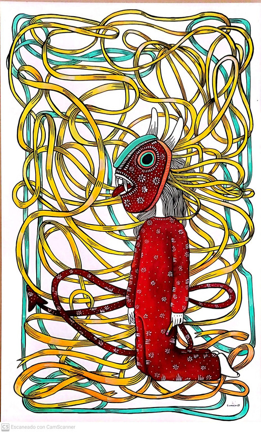 reprodicción poster, pieza de ilustracion diablilla impresa sobre papel cartulina blanca cocuche de 200grm. firmada en original tamaño doble carta