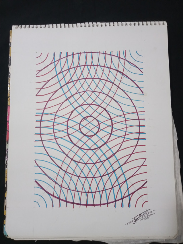 Dibujo trazado con compas marcado con plumun a mano alzada